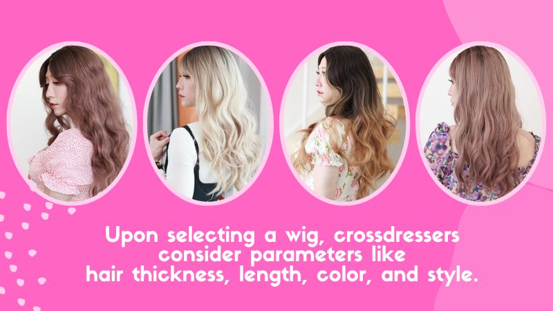 Upon selecting a wig, crossdressers consider parameters like hair thickness, length, color, and style.