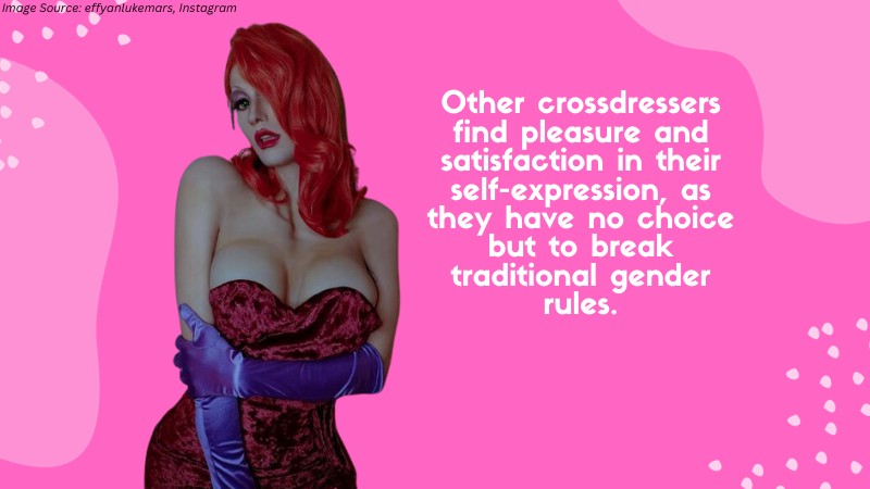 Different people cross-dress for different reasons. However, other crossdressers find pleasure and satisfaction in their self-expression, as they have no choice but to break traditional gender rules.