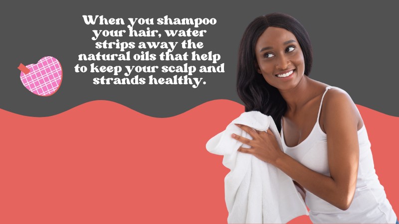 This is one of the most controversial subjects in the hair world, but I firmly believe that water is not always your friend regarding hair growth. When you shampoo your hair, water strips away the natural oils that help to keep your scalp and strands healthy.