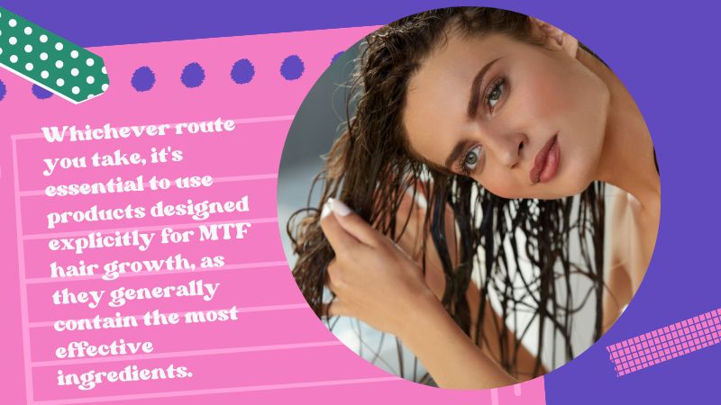 These treatments can be smeared directly to the scalp or used in conjunction with other styling techniques. Whichever route you take, it’s essential to use products designed explicitly for MTF hair growth, as they generally contain the most effective ingredients.