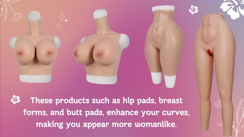 These products such as hip pads, breast forms, and butt pads, enhance your curves, making you appear more womanlike.