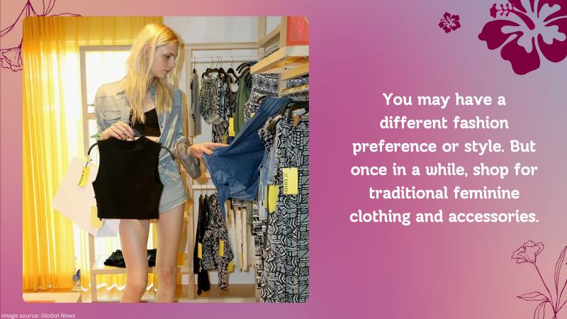The next time you shop, buy something obviously girly. This can be a pink skirt or a flowery dress.