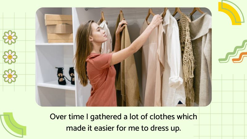 It was a good feeling to have my things and not have to use my sister’s wardrobe, makeup, earrings, and necklace.