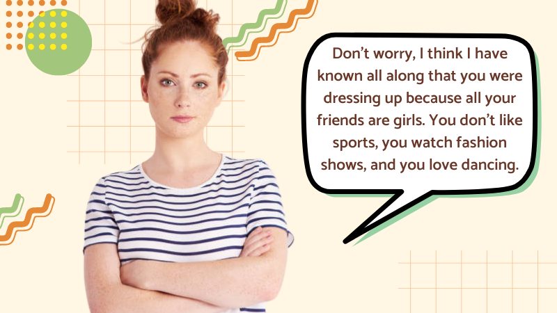 I think I have known all along that you were dressing up because all your friends are girls, you don’t like sports, you watch fashion shows, and You love dancing.