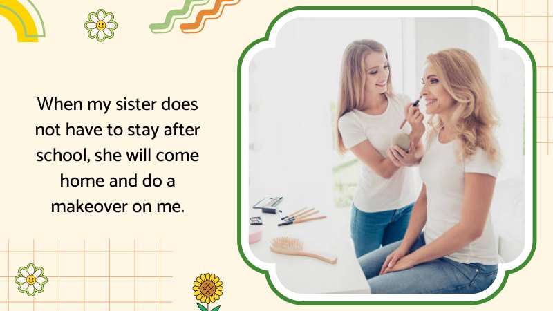 When my sister does not have to stay after school, she will come home and do a makeover on me.