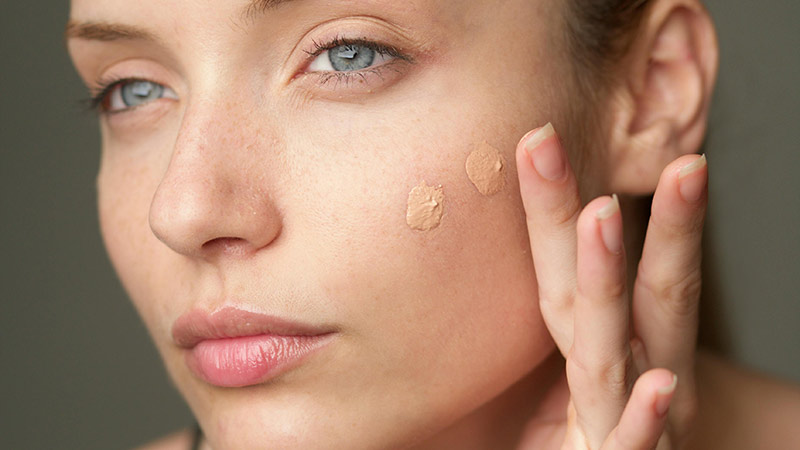 I generously apply the corrector, orange in my case, and cover it all with the foundation to match my skin tone, blending out to give a smooth satin finish.