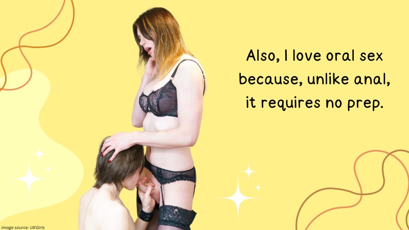 Also, I love oral sex because, unlike anal, it requires no prep. It’s reasonably safe, effective,