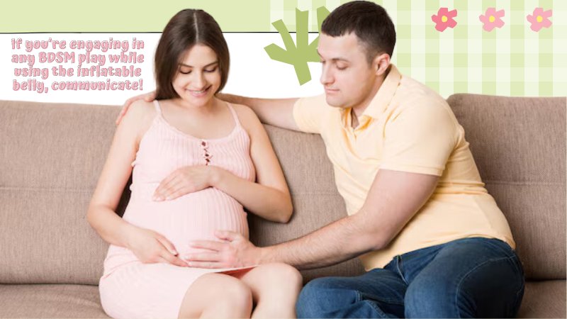 If you’re engaging in any BDSM play while using the inflatable belly, communicate! Your fake belly won’t do the talking for you!