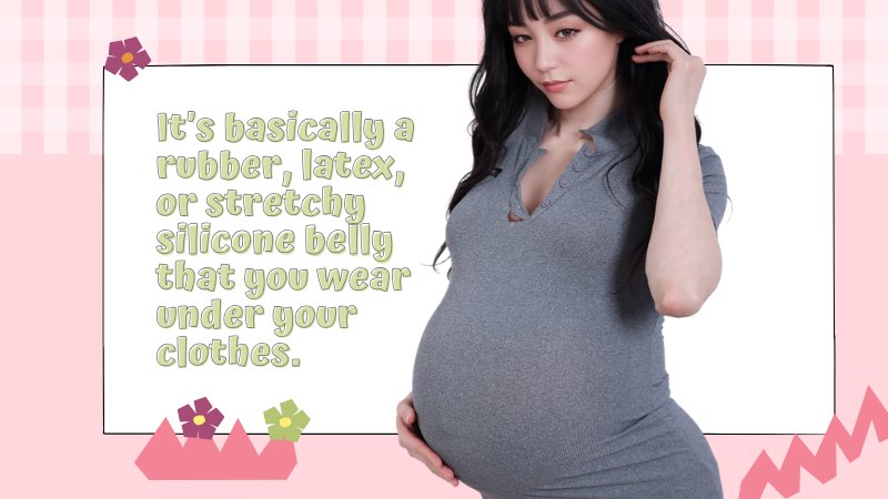 What exactly is an inflatable belly? It’s basically a rubber, latex, or stretchy silicone belly that you wear under your clothes. With a little pump action (or breath work if you’re feeling ambitious), it inflates to the size you want it to be!