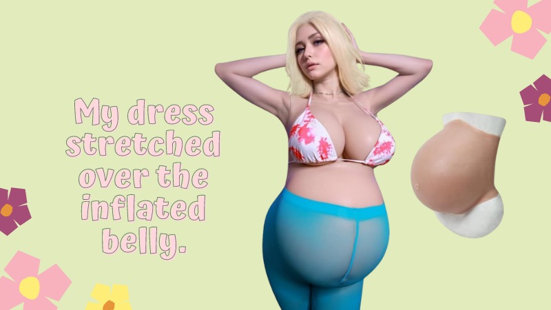 My dress stretched over the inflated belly. It was a bit surreal, but also undeniably sexy. It was like a playful take on femininity with a kinky twist.
