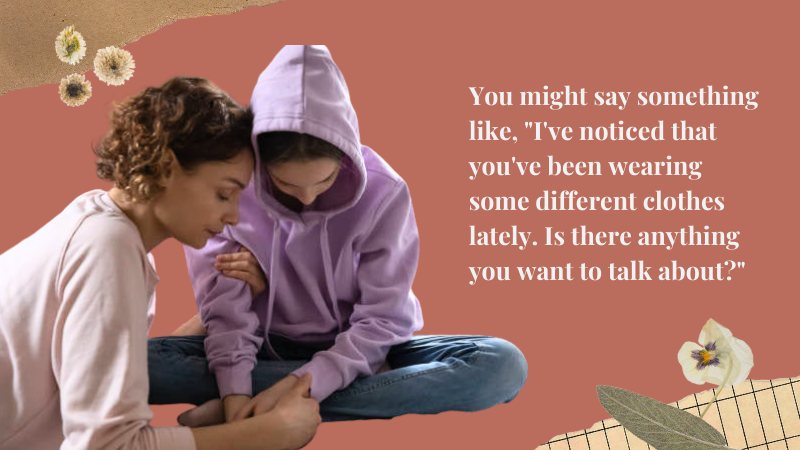 One way to start the conversation is to simply ask your teen how they’re feeling and what’s been on their mind lately. You might say something like, “I’ve noticed that you’ve been wearing some different clothes lately. Is there anything you want to talk about?” or “I want you to know that I love and support you no matter what, and I’m always here to listen if you need someone to talk to.”
