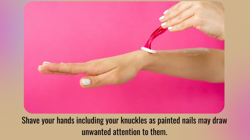 Start, for example, by shaving your hand, including your knuckles, as painted nails may draw unwanted attention to them.
