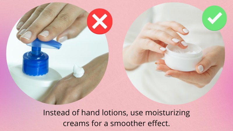 Instead of hand lotions, use moisturizing creams for a smoother effect.