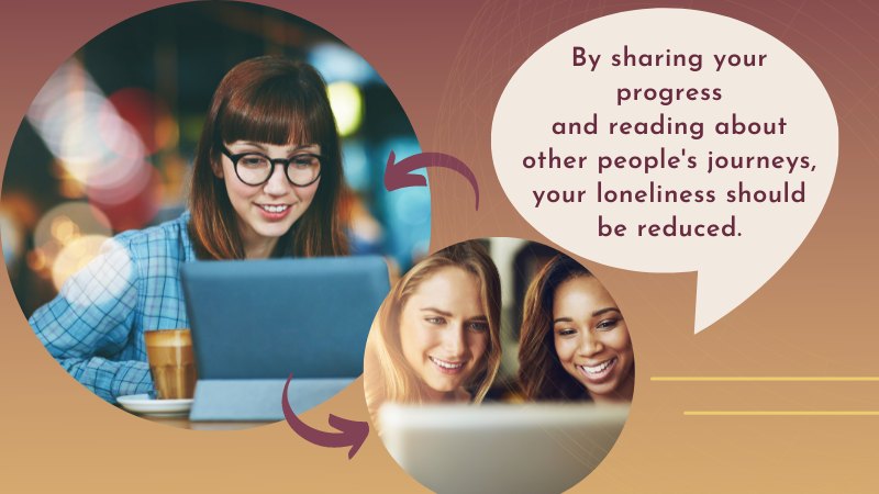 Interacting with each other like that helps our community to grow stronger. It encourages newcomers to keep up with their own journeys. By sharing your progress and reading about other people’s journeys, your loneliness should be reduced.