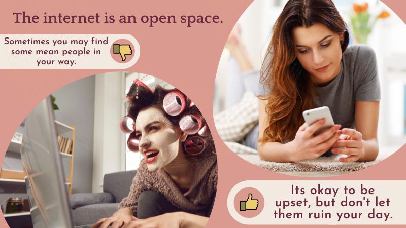 I just want to make it clear that the internet is an open space, and that sometimes you may find some mean people in your way. So don’t mind if a few users say something bad about you. It’s okay to be upset and to report them to admins, but don’t let them ruin your day. They probably have nothing else to do and decided to spend their afternoon making others feel bad. The problem is always in them, not you.