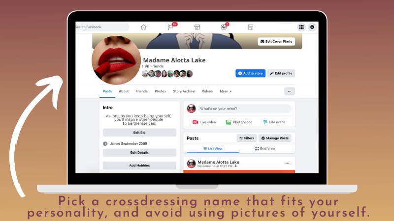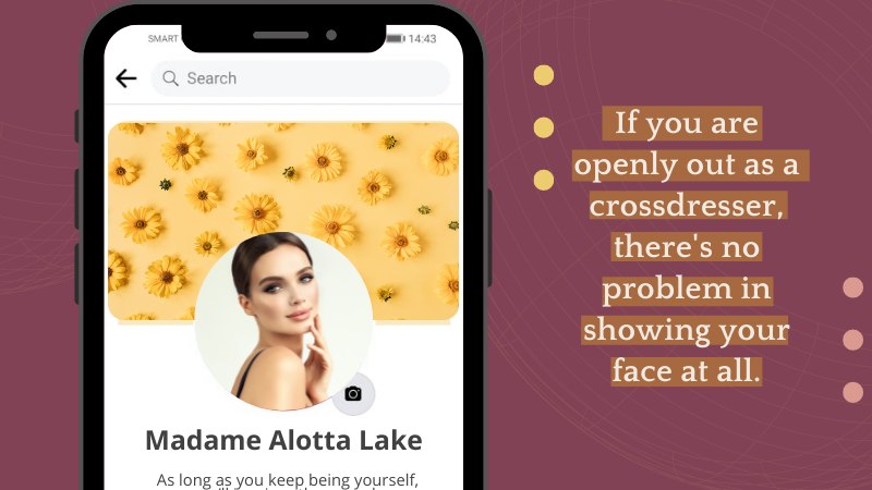To get more freedom in your social media, it may be a good choice to create a new profile in them. Pick a crossdressing name that fits your personality, and avoid using pictures of yourself. That’s to avoid being recognized. But if you are openly out as a crossdresser, or feel confident enough, there’s no problem in showing your face at all.