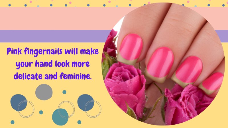 If combined with proper feminine outfits and makeup, pink fingernails will make your hand look more delicate and feminine.