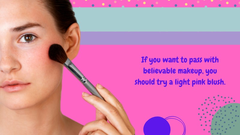 If you want to pass with believable makeup, you should try a light pink blush. You’ll look delicate, healthy, and more feminine by adding just a hint of color.