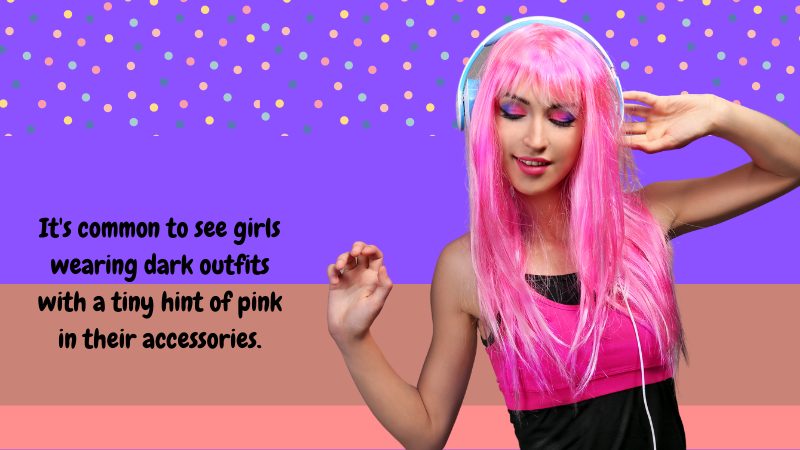 It’s common to see girls wearing dark outfits with a tiny hint of pink in their accessories.