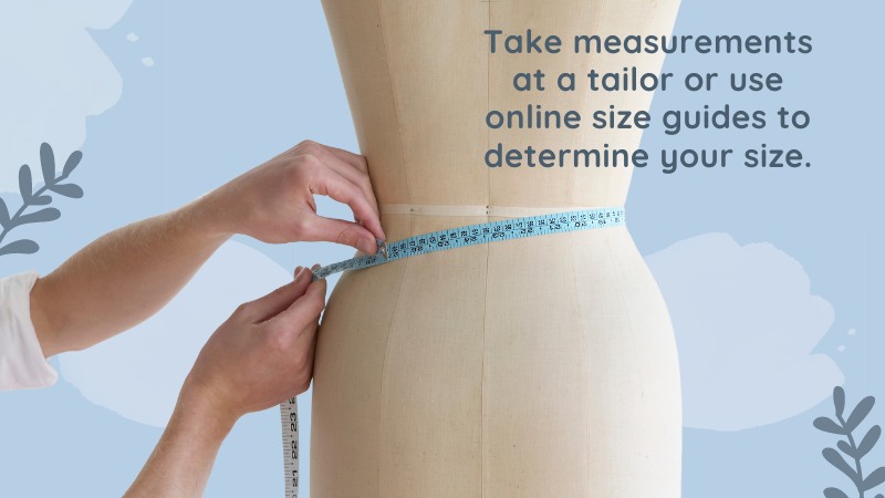 Take measurements at a tailor or use online size guides to determine your size.
