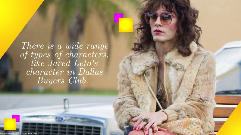 There is a wide range of types of characters, like Jared Leto’s character in Dallas Buyers Club.