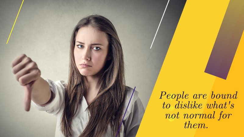 ● People are bound to dislike what’s not normal for them.