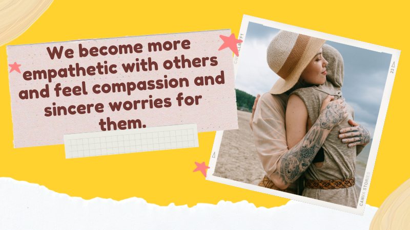 We become more empathetic with others and feel compassion and sincere worries for them.