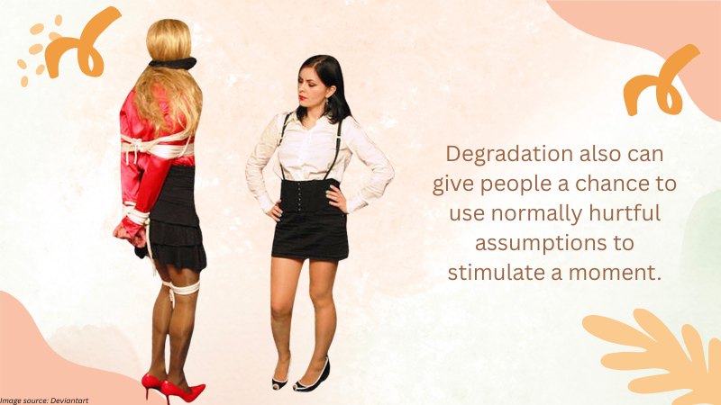 Degradation can also give people a chance to use normally hurtful assumptions to stimulate a moment. The use of mean words can add tension to a power dynamic. It also gives you a chance to give yourself to the one degrading you.
