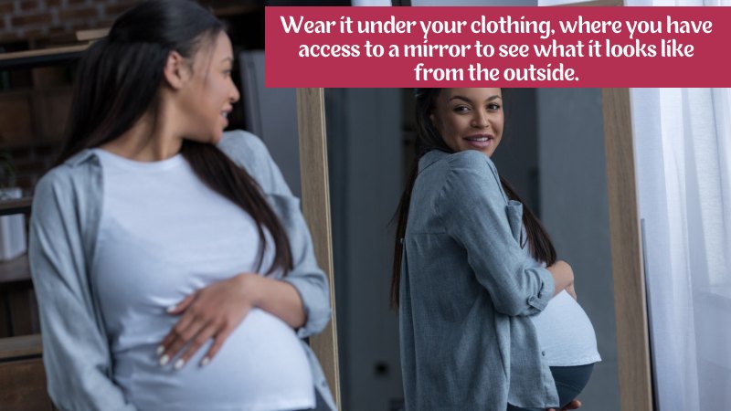 Since it can sometimes be quite an odd piece of clothing, you’ll want to make sure that you’re able to hide your pregnant belly when you’re not wearing it. This will mainly involve hiding and tucking it into the rest of your clothes. This is something that you’ll be able to do much better once you’ve started wearing it for a while and are familiar with how it looks from different angles. You’ll want to tuck and fold the edges of the belly down into the rest of your clothes so that it looks like it fits you properly. The top layer should be tucked into your bra and your shirt to show that you’re wearing a normal shirt. Alternatively, you can also tuck your top layer under your skirt but ensure it’s not too obvious.