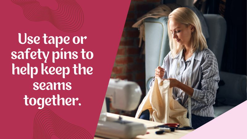 When wearing a pregnant belly under your clothing, you can use tape or safety pins to help keep the seams together, especially around your crotch area. Be careful when doing this since you don’t want to put too much pressure on the seams or put holes in them accidentally. Also, make sure that you don’t wear anything squishy or too tight, like tights under the pregnant belly. You’ll want to keep your items loose and comfortable so that they don’t constrict your stomach.
