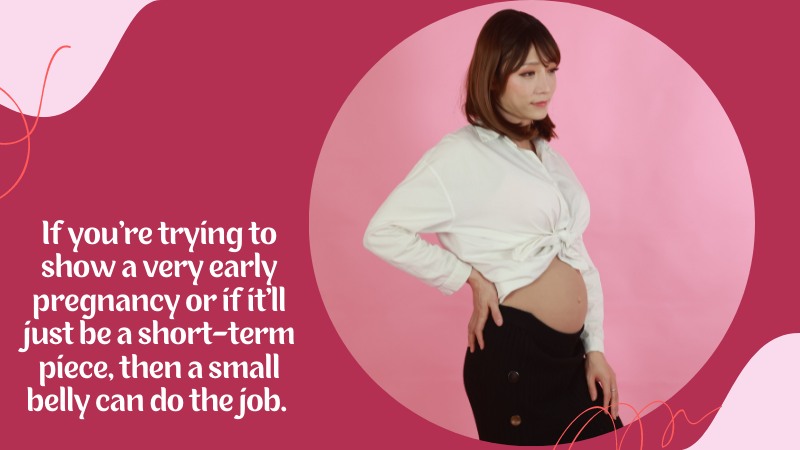 Another type of pregnant belly is the flat belly which typically has a lot more padding in it so that it’s a bit more padded and fuller than a typical pregnancy belly. This can be made by adding extra layers of fabric or stuffing it with rags, cardboard, or polyfoam. This belly can be good for first-timers because it’s easier to make but also looks unnatural and fake. Using a flat belly is not recommended if you’re looking for a realistic look.