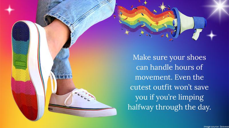 ● Sneakers: The MVP of Pride footwear. Go for fashion sneakers or classic canvas.