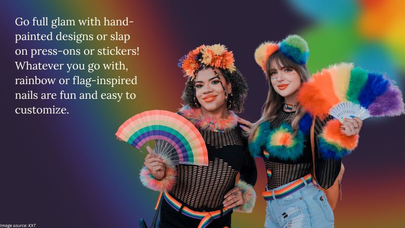 Go full glam with hand-painted designs or slap on press-ons or stickers! Whatever you go with, rainbow or flag-inspired nails are fun and easy to customize.