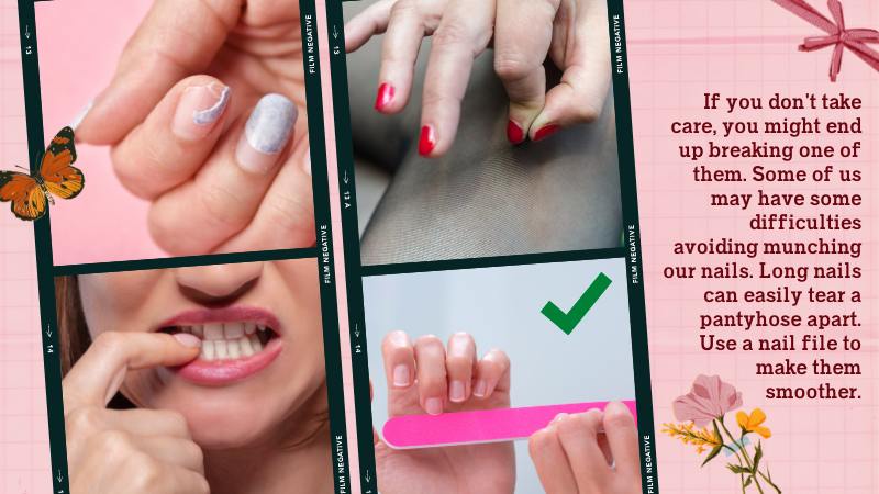 And you must be extra careful with your hose, as long nails can easily tear a pantyhose apart.