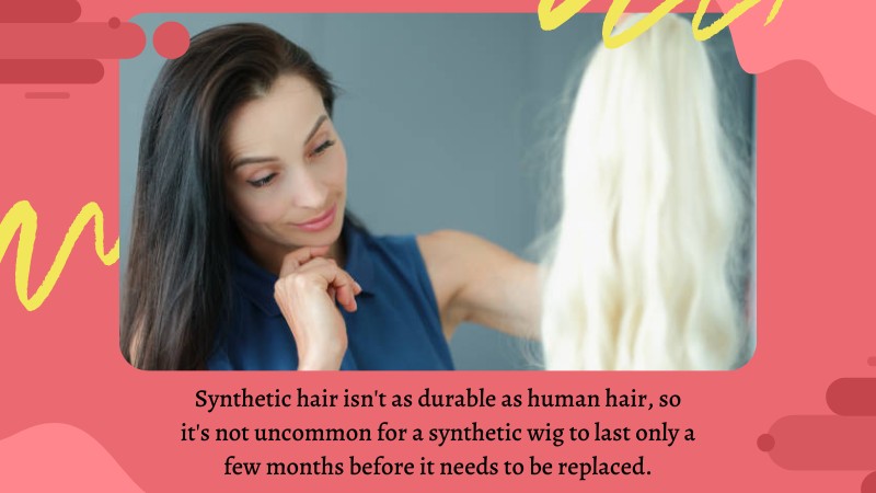 One of the biggest challenges of synthetic wigs is their shorter life span. Synthetic hair isn’t as durable as human hair, so it’s not uncommon for a synthetic wig to last only a few months before it needs to be replaced. As said, they tend to have a shorter lifespan than human hair wigs, so although it’s more affordable at first, you’ll likely be purchasing another one in a few months instead of a year with human wigs.