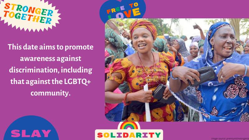 This date aims to promote awareness against discrimination, including that against the LGBTQ+ community. It is a way of promoting integration, affirming that we are valid and do not deserve discrimination. Even though it’s not limited to the LGBTQ+ theme, the fact that it includes us is worth acknowledging.