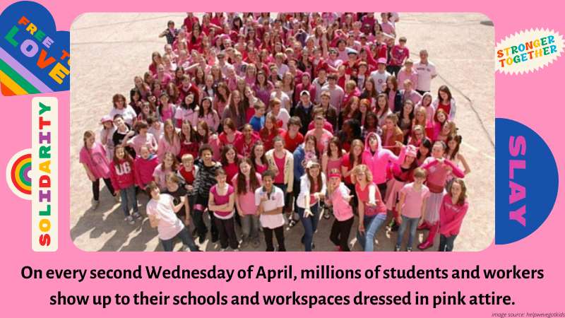 Their actions showed support for the bullied student. Then, it became an international Holiday thanks to the Canadian Centre for Gender and Sexual Diversity. Now, on every second Wednesday of April, millions of students and workers show up to their schools and workspaces dressed in pink attire. And even though the goal is to stop all forms of bullying, its focus is on bullying against the LGBTQ+ community.