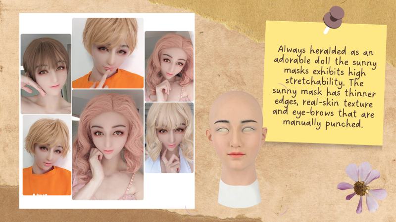 The sunny mask has thinner edges, real-skin texture and eyebrows that are manually punched.