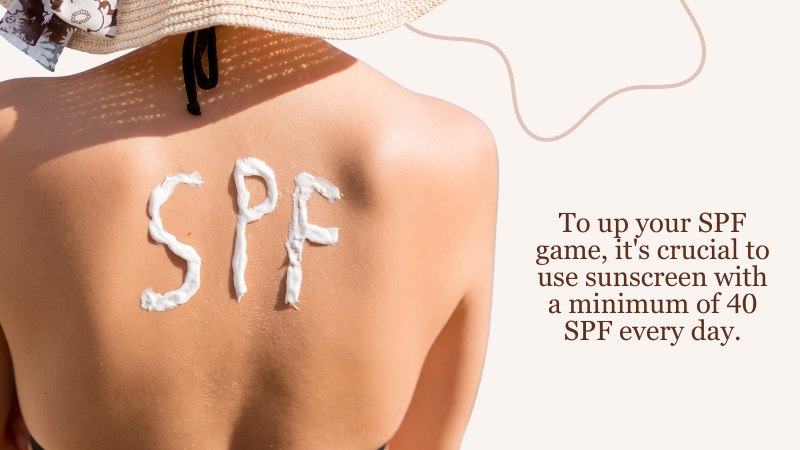To up your SPF game, it’s crucial to use sunscreen with a minimum of 40 SPF every day.