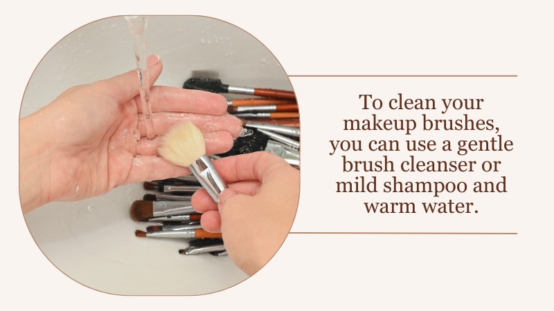 To clean your makeup brushes, you can use a gentle brush cleanser or mild shampoo and warm water.