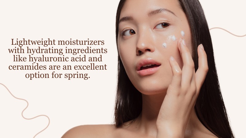 Lightweight moisturizers with hydrating ingredients like hyaluronic acid and ceramides are an excellent option for spring.