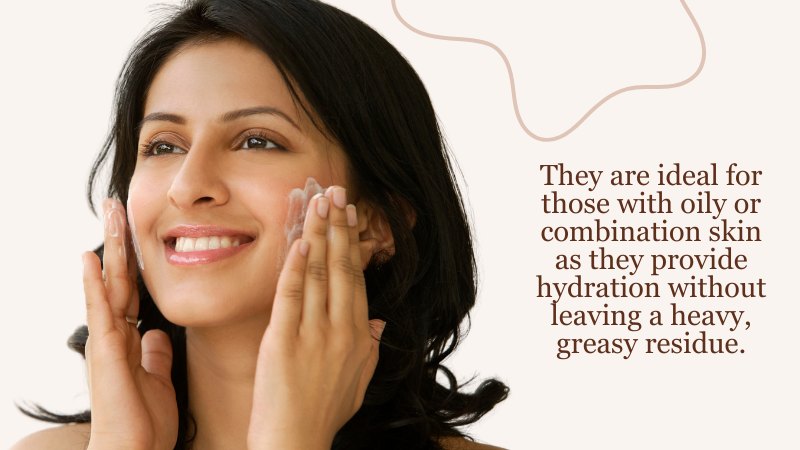 They are ideal for those with oily or combination skin as they provide hydration without leaving a heavy, greasy residue.