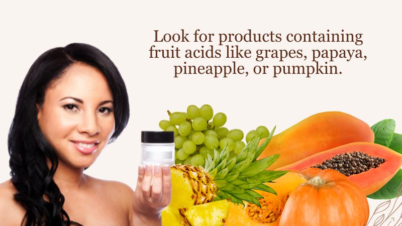 Look for products containing fruit acids like grapes, papaya, pineapple, or pumpkin.