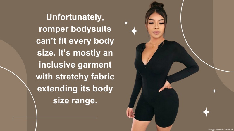 Unfortunately, romper bodysuits can’t fit every body size. It’s mostly an inclusive garment with stretchy fabric extending its body size range.