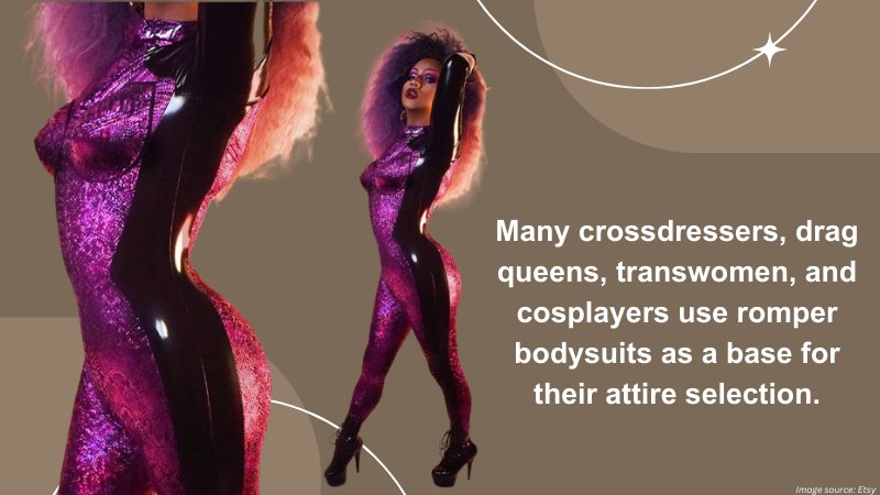 Many crossdressers, drag queens, transwomen, and cosplayers use romper bodysuits as a base for their attire selection.