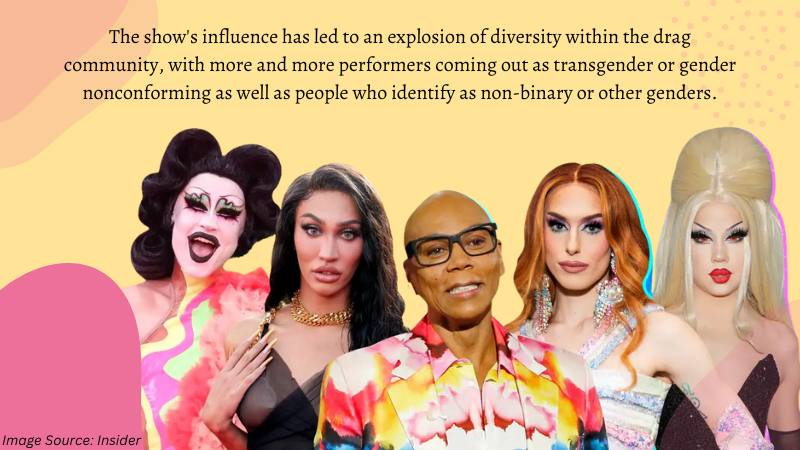 The impact of RuPaul’s Drag Race on the mainstream visibility and acceptance of drag culture is palpable. From the show’s earliest days, it has been an extraordinary platform for drag queens to appear in the media and receive widespread attention from viewers. The show’s influence has led to an explosion of diversity within the drag community, with more and more performers coming out as transgender or gender nonconforming as well as people who identify as non-binary or other genders.