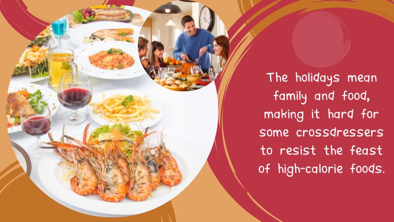 We can’t help but feel festive when seeing commercials and decorations popping up in any holiday season. The holidays mean family and food, making it hard for some crossdressers to resist the feast of high-calorie foods. However, getting in shape sounds like a daunting task during these times. Having the best intentions to lose weight and stay healthy can be foiled since we often let ourselves indulge during the holidays. We have to contend with holiday parties, cookies, candy, and friends and family trying to tempt us with delicious food.