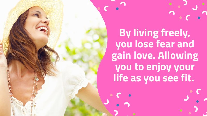By living freely, you lose fear and gain love. Love for yourself and others, caring for those close to you.