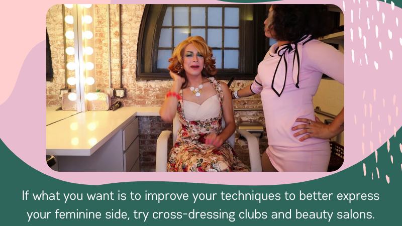 Now, if what you want is to improve your techniques to better express your feminine side, try cross-dressing clubs and beauty salons. There you’ll be able to practice and perfect your skills, among other things. Make sure you go there in the company of some other cross-dressing friends. It helps improve your confidence and avoid discrimination. This is something most of us cant do in our everyday life, so a secondary life is a way o making such dreams come true.