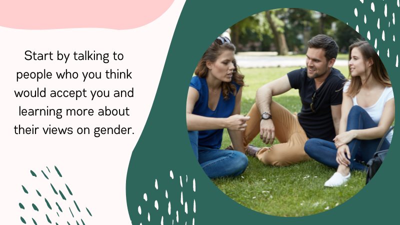 But before you make such a decision, think about every detail of coming out to them. You can start by talking to people who you think would accept you and learning more about their views on gender. Soon enough, you might have an idea of a select list of people that you already know and to whom you could come out without problems. If you manage to present femme near them, you might not need to find a whole new group of friends. Sometimes, it’s a matter of dialogue that can save you a lot of effort. But there’s no problem in making new friends, even if you already have people to support you. Consider that when planning, so even if you decide to live a double life, you can trust these people and make them part of it.